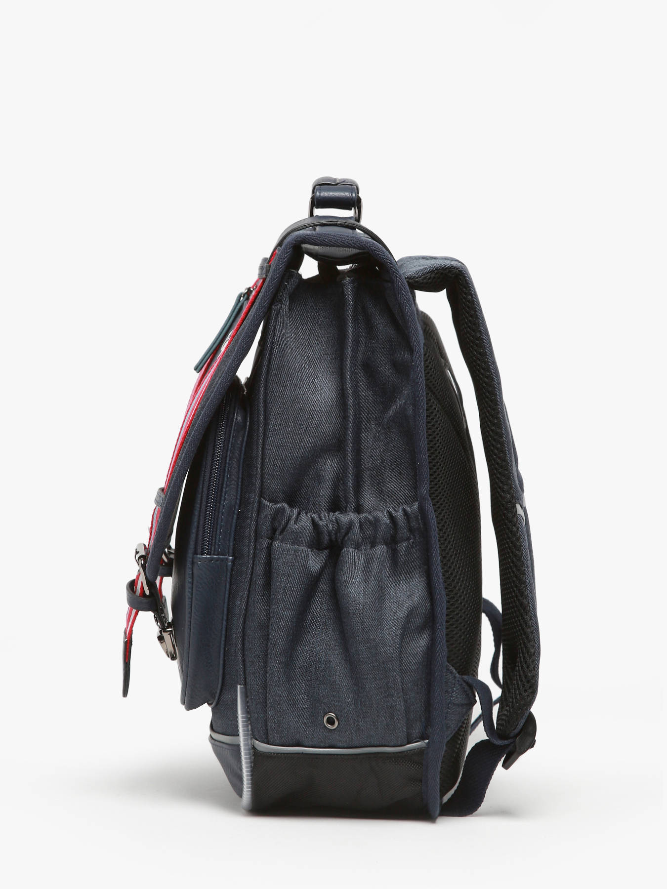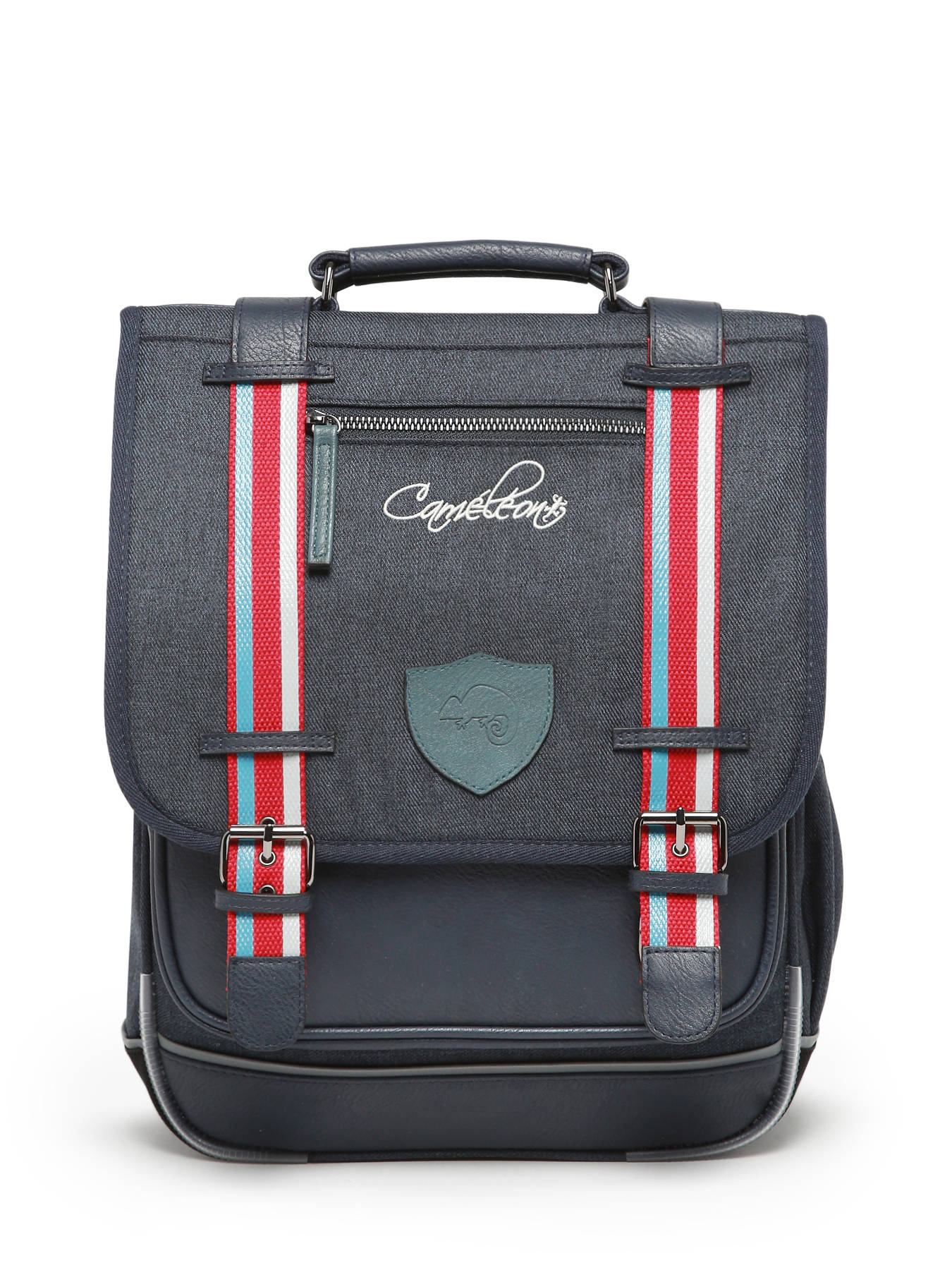 39 cm - 19 liters - 1.12 kg ~ 39 cm primary school backpack from the Vintage Urban line by Caméléon. We love this schoolbag with its updated design, ideal for smaller builds. It’s perfect for 1st and 2nd grade. The load is better distributed to reduce strain on children's backs. The two compartments can easily hold A4-sized notebooks. A dedicated slot for a ruler is included, and a side pocket is designed to carry a water bottle. For added comfort, the back and shoulder straps are padded, and the bottom is reinforced. For safety, the backpack features reflective strips. Made from waterproof recycled polyester.