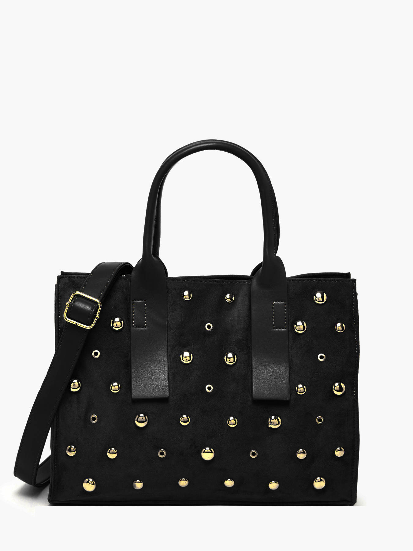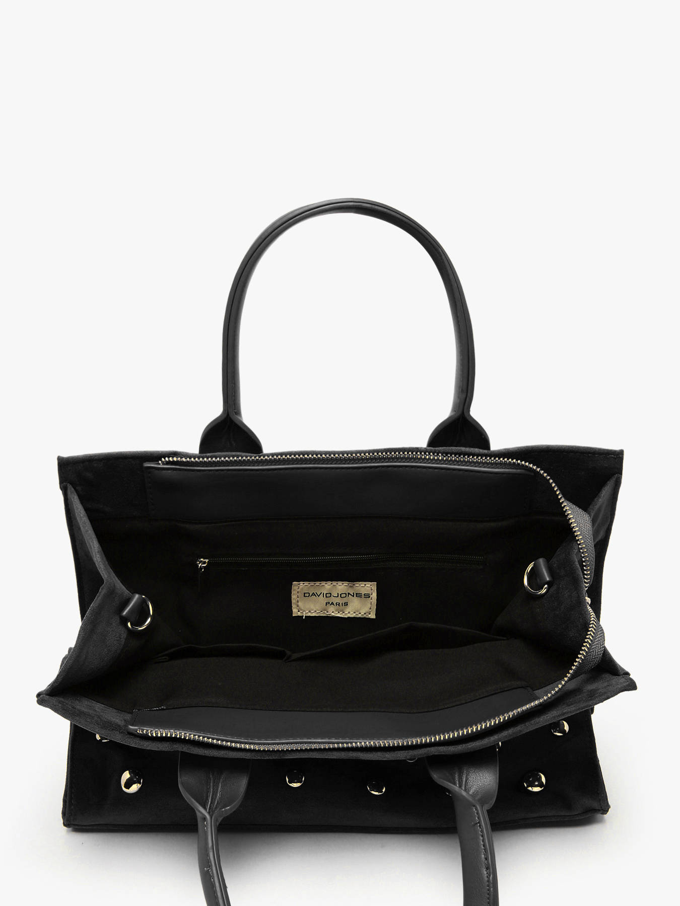 This A4 Stud David Jones handbag, crafted from durable synthetic material, combines modern elegance, functionality, and versatility. Its zip closure secures your belongings while adding a contemporary touch to its sleek design. The two side pockets and back pocket provide quick access to essentials, while the adjustable, removable shoulder strap and 13 cm handle allow for hand or crossbody wear according to your needs. Inside, a main compartment, two slip pockets, and a zip pocket ensure optimal organization for documents, phone, and other essentials. Compact yet spacious enough for A4 items, this bag stands out with modern lines, refined finishes, and lightweight design, adding sophistication to any outfit. Versatile and practical, it accompanies city days, professional appointments, or outings, combining style, comfort, and functionality.