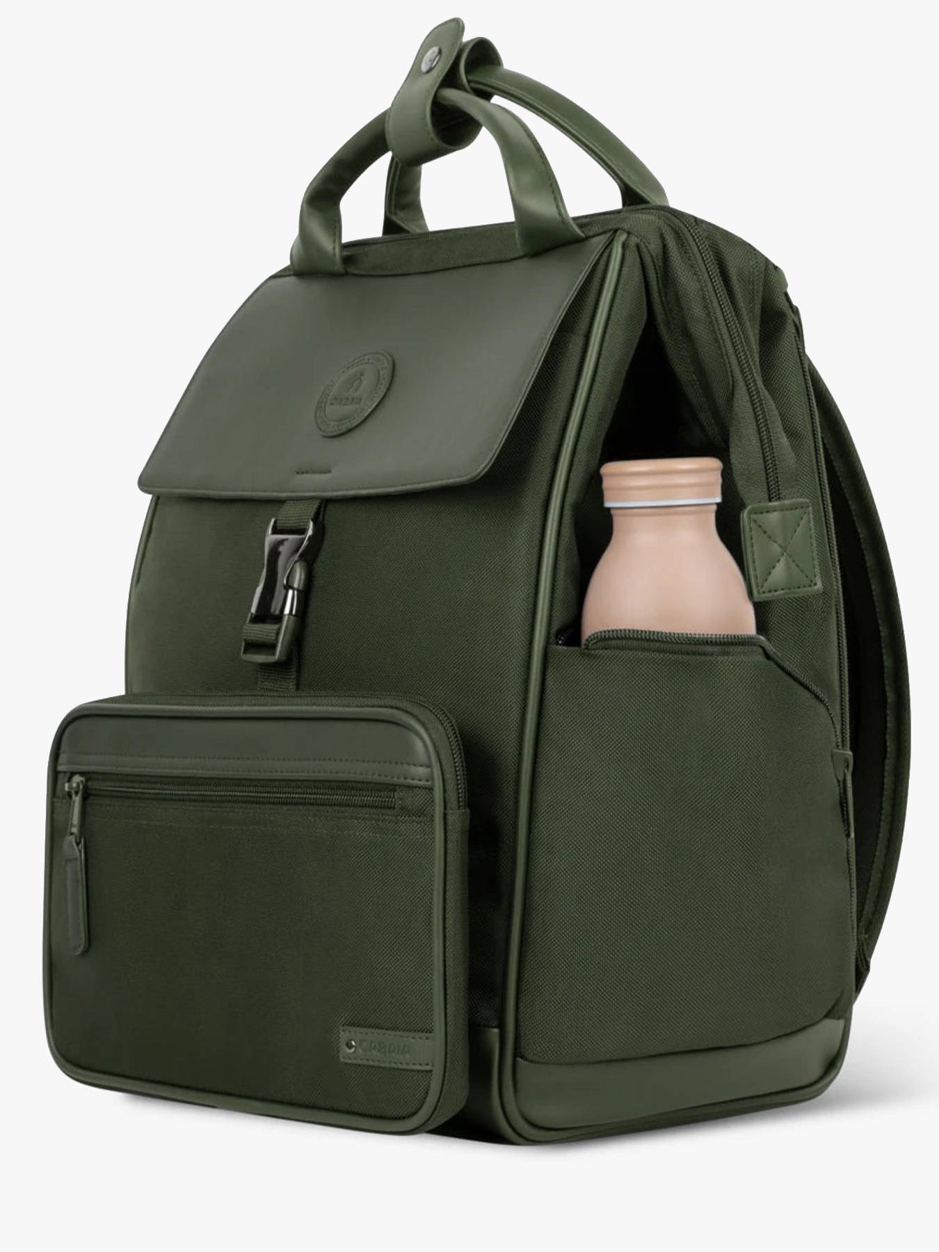 The BOLD business backpack by CABAIA, made from recycled nylon, combines elegance, functionality, and eco-consciousness. Designed for professionals, it features multiple exterior pockets — two at the front, two on the sides, and one at the back — allowing quick and organized access to your personal items. Its zip closure ensures the security of your belongings. Inside, a spacious main compartment fits A4 documents, notebooks, and binders. A dedicated pocket for a 14-inch laptop and a special compartment for a tablet provide optimal protection for your electronic devices. Adjustable shoulder straps and a telescopic handle make carrying it by hand or on your back easy and comfortable. This backpack combines modern design with sustainable materials, perfect to accompany your workdays with style and responsibility.