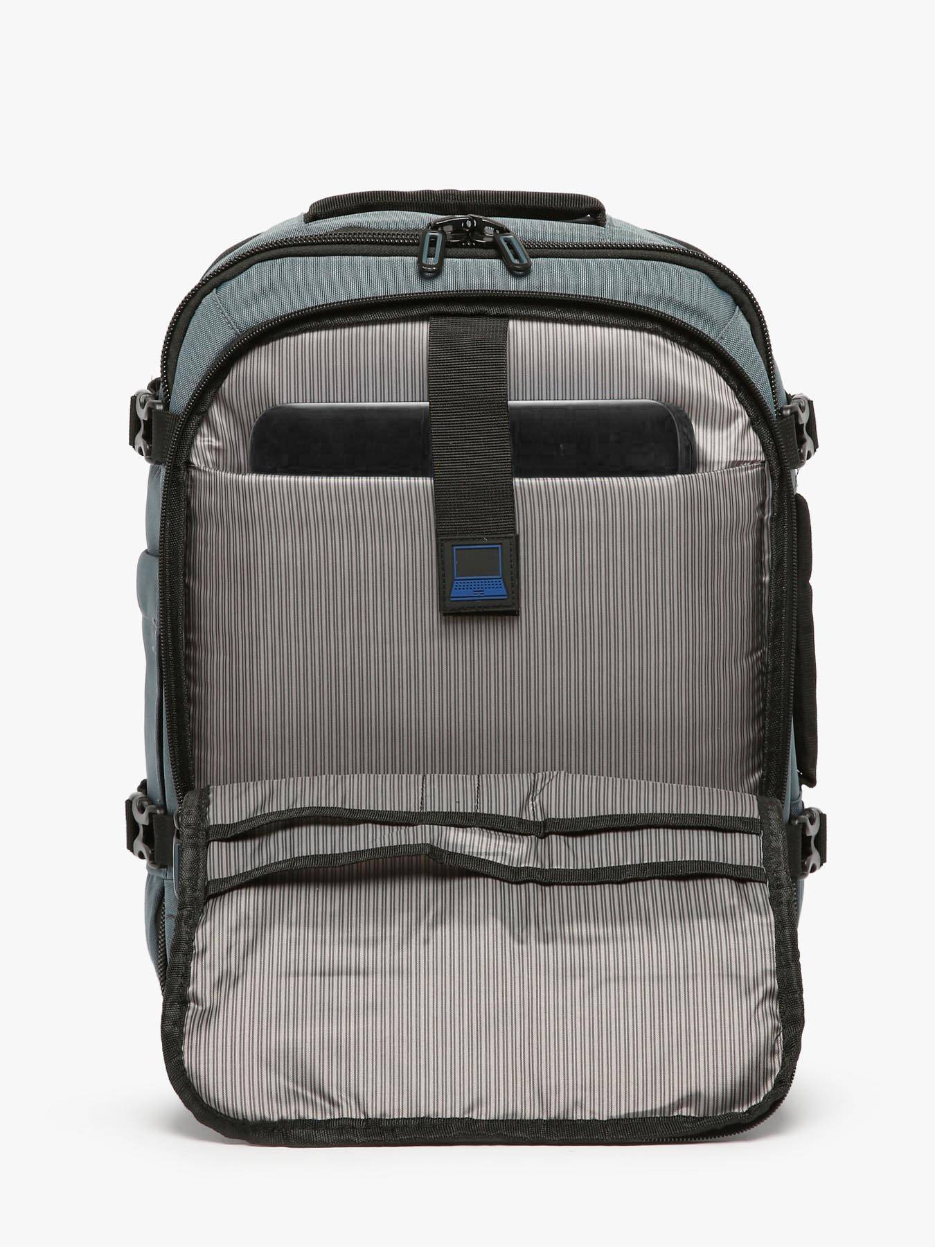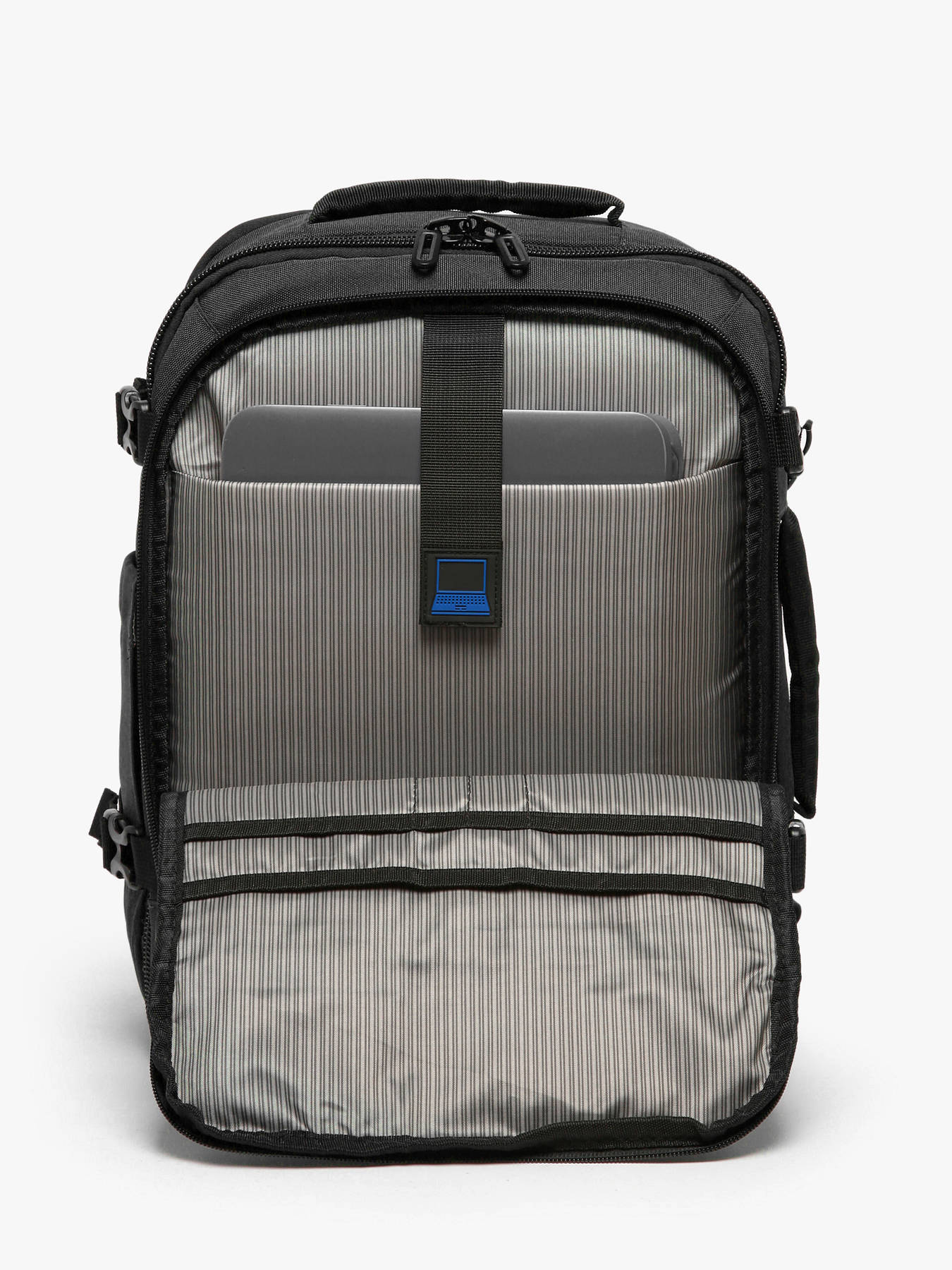 The Snowball backpack is the perfect choice for light and smart travel, whether by plane or train. With its compact size (40 × 30 × 15 cm), it fits as an underseat bag on most low-cost airlines. Its expandable gusset increases capacity up to 22 L, ideal for an extra overnight stay. The U-shaped zip opening offers suitcase-style packing, with adjustable straps to secure clothing and a mesh pocket for toiletries or essentials. Organization is simple with a padded sleeve for a 14’’ laptop, a large front pocket for documents, a discreet back pocket for passport and valuables, and a side bottle holder. Comfort is ensured with padded shoulder straps, cushioned back panel, and two soft handles. It can also be attached to a trolley for easy transport. Reflective details, compression straps, reinforced base and lockable zippers make it a smart and affordable travel companion.