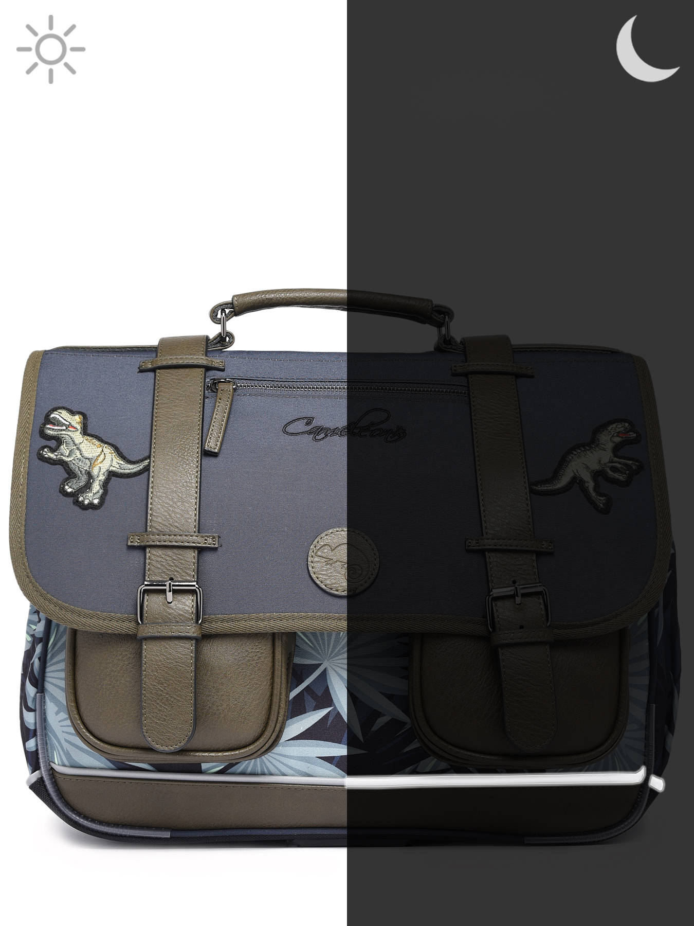 41 cm - 24 litres - 1.33 kg ~ Cartable primaire 41 cm signé Caméléon de la ligne Vintage Urban. Ce cartable enfant convient parfaitement pour le CM1 et le CM2. On adore les belles touches vintage avec ses finitions et sa poche à fermeture zippée sur le rabat ! Il se divise en trois grands compartiments pour l'ensemble des affaires d'école. Fonctionnel, il dispose d'une petite poche zippée, d'un emplacement spécial règle ainsi que de deux poches à fermeture éclair sur le devant du cartable. Petit plus, ce cartable dispose d'une étiquette nom. Ergonomique, la poignée et le fond du cartable sont renforcés. Très confortable, le dos et les bretelles sont rembourrés. Ce cartable est imperméabilisé. Côté sécurité, des bandes réfléchissantes sont disposées autour du cartable enfant. Petit plus, une règle est offerte !