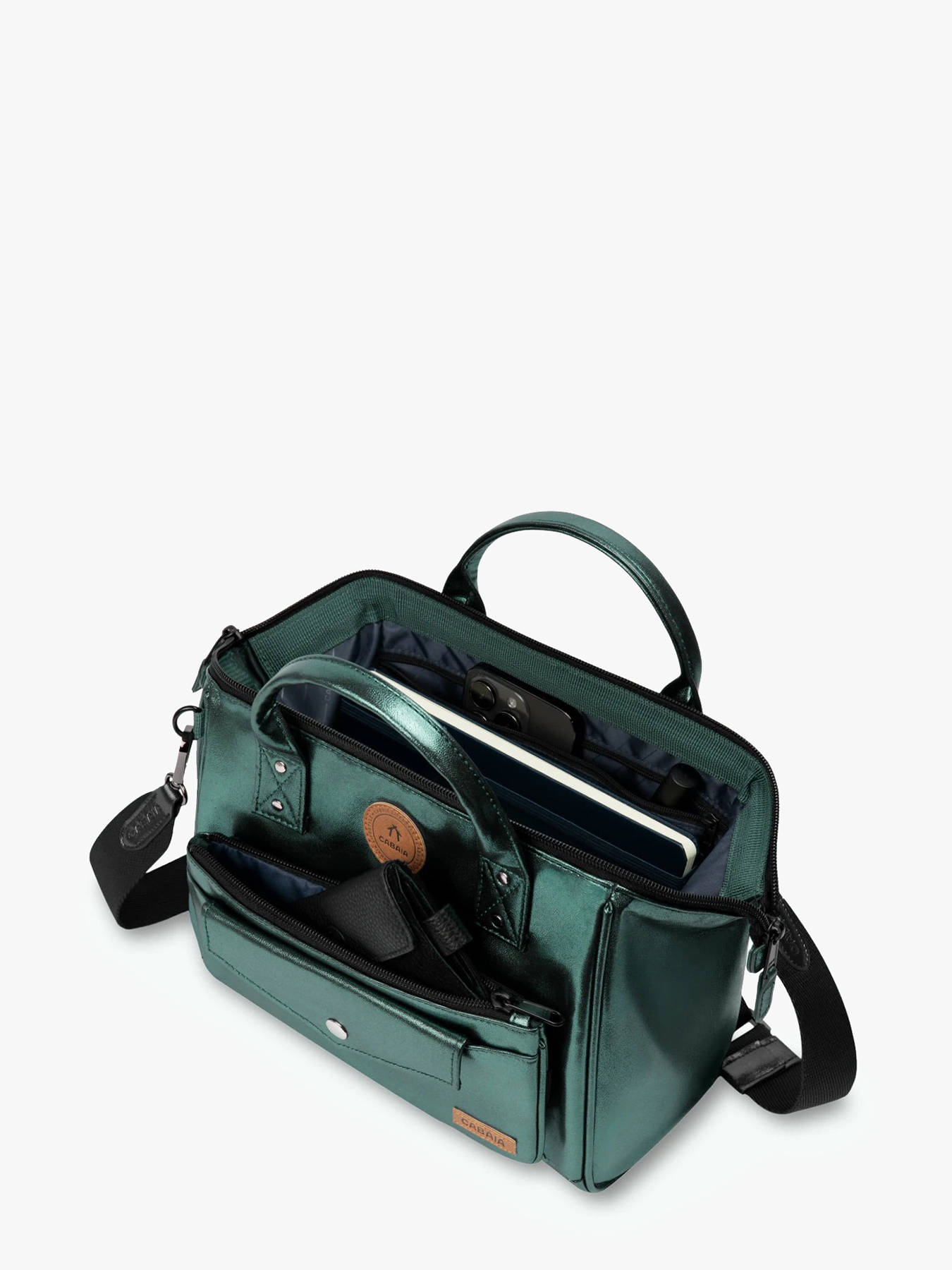 The CABAIA crossbody bag, made from recycled polyester, is both eco-friendly and practical. On the outside, it features a front pocket and a back pocket for quick access to your small essentials. Its zip closure ensures the security of your belongings. The adjustable and removable shoulder strap allows you to wear it crossbody or by hand, depending on your preference. Inside, two simple pockets, one zippered pocket, and a main compartment provide optimal organization for your personal items. This bag combines functionality and environmental responsibility, making it perfect for everyday use.
