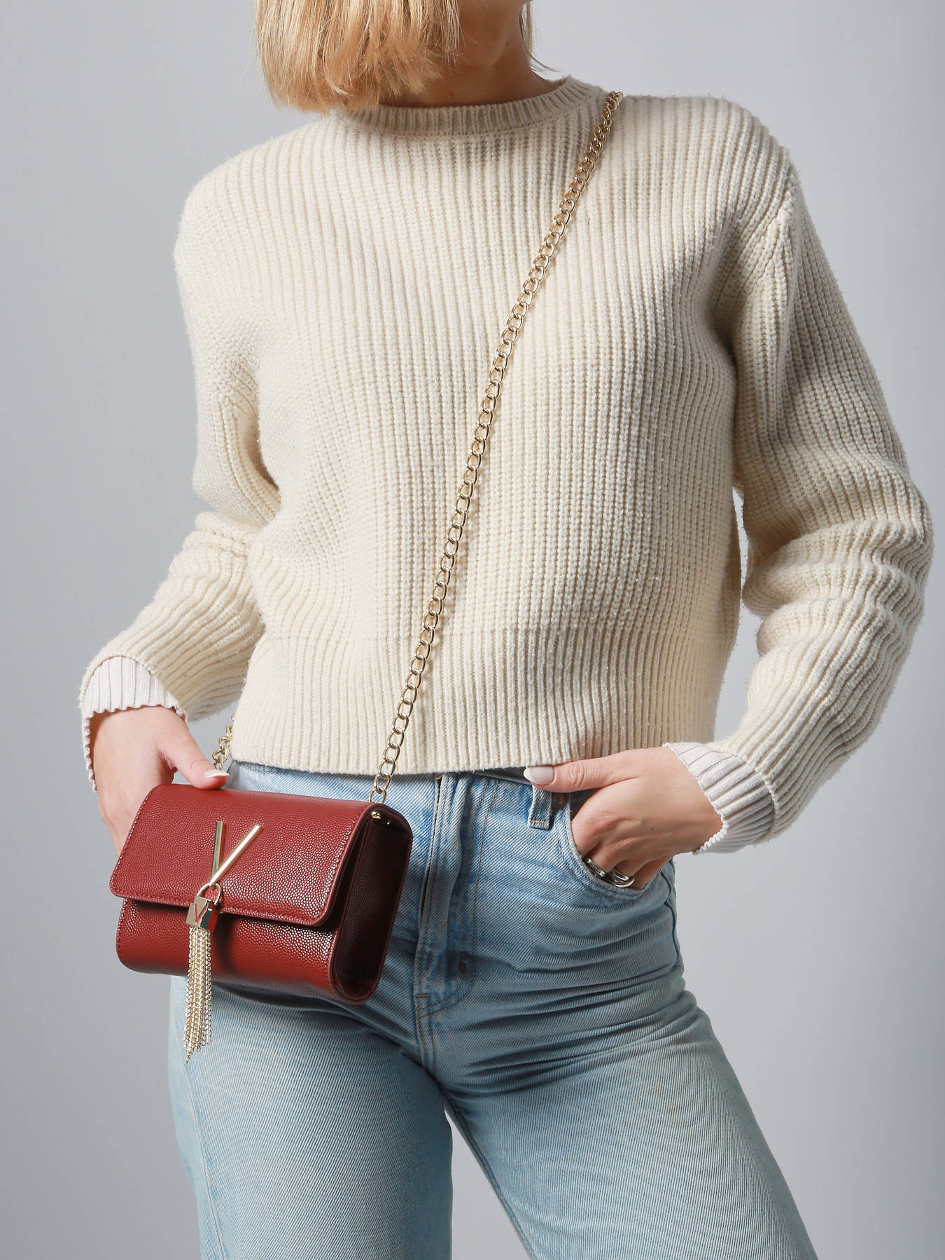 Let yourself be tempted by this bag from Valentino. Both chic and timeless, it will accompany you everywhere and will easily match all your outfits. You will easily carry it on your shoulder or across your chest, and its flap closure houses a compartment as well as a single pocket and a zip pocket. The details on the front give a rocky feel, nothing better to add a touch of pep to your outfits.