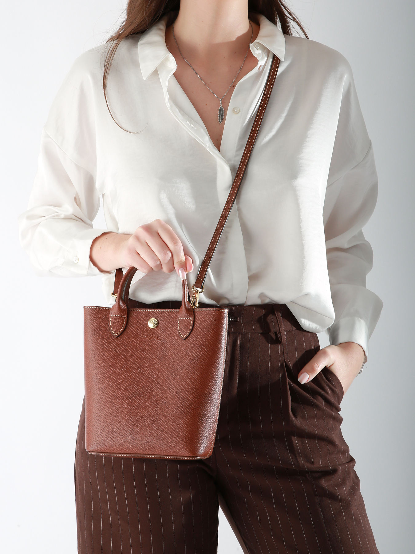 This LONGCHAMP crossbody bag in cowhide leather embodies minimalist elegance and artisanal expertise. Featuring a snap closure, a 7 cm handle, and an adjustable, removable strap, it offers exceptional versatility, allowing it to be carried by hand, on the shoulder, or across the body. Its refined Russian leather and clean lines highlight a timeless, sophisticated design, enhanced by a signature snap button. Inside, a spacious compartment and a simple pocket provide room for your daily essentials, such as a paperback book or personal accessories. Inspired by an optimistic and elegant vision of everyday life, this bag combines structured, graphic lines with perfect functionality, effortlessly adapting to all styles and occasions. Ideal for accompanying your day-to-day activities, it stands out as a chic and practical must-have.