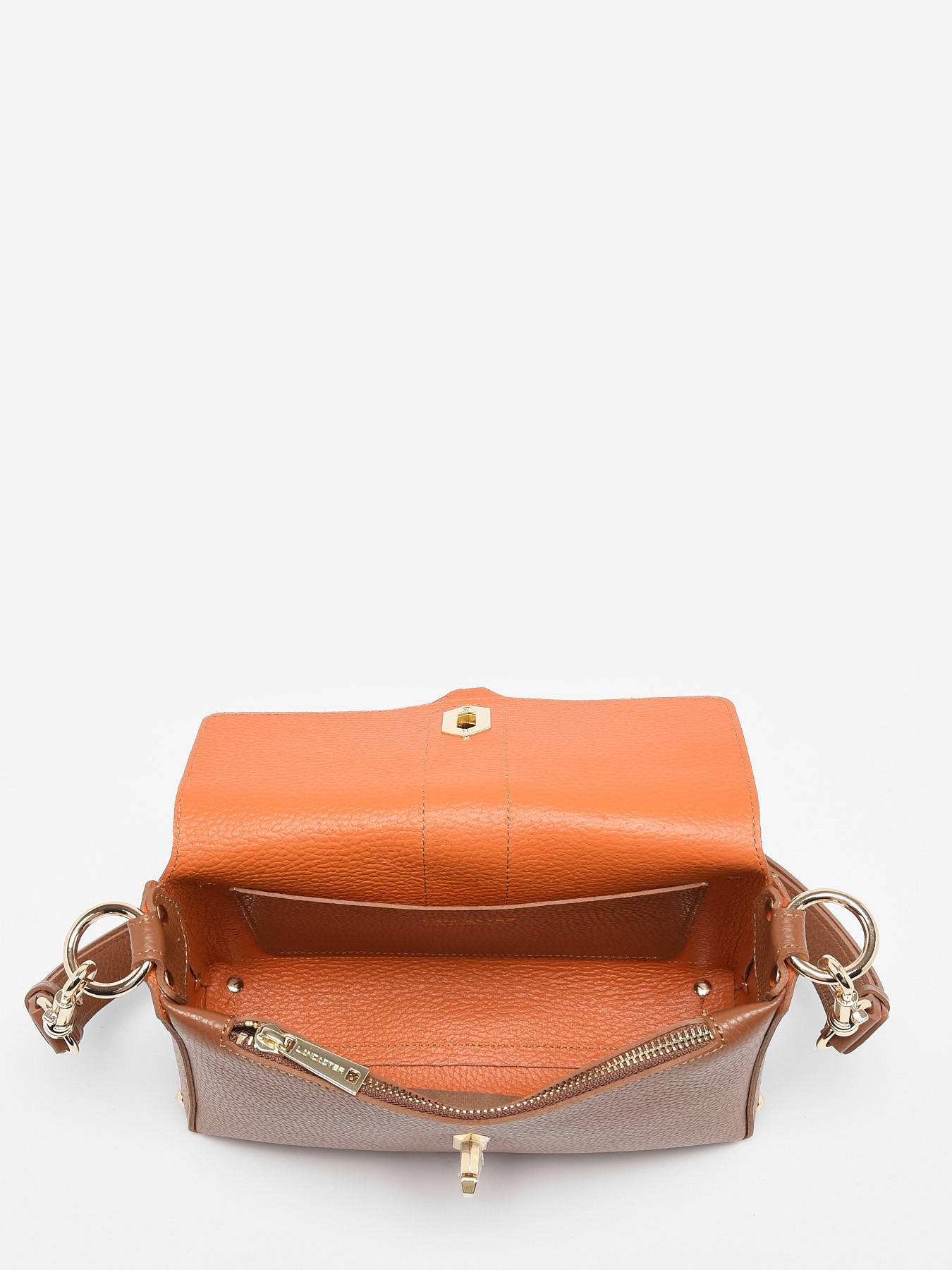 We suggest you at Edisac this Lancaster leather shoulder bag from the ""Foulonne double"" line for its grained cowhide leather material, its flap closure with clasp, its many types of carry (across or shoulder), its short and simple handles and its cowhide lining. Don't wait any longer to add it to your cart! Indeed, you can be sure that this bag will keep its modernity throughout the seasons, while becoming timeless.