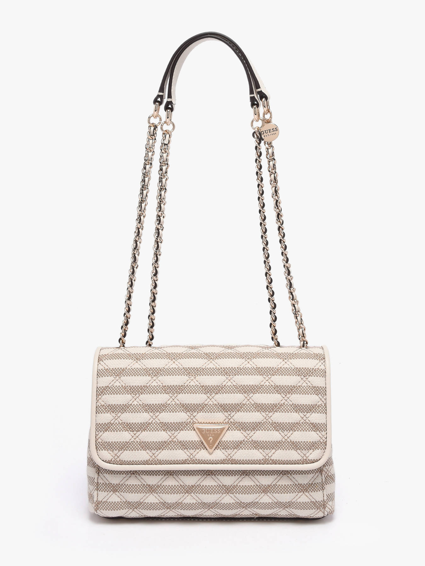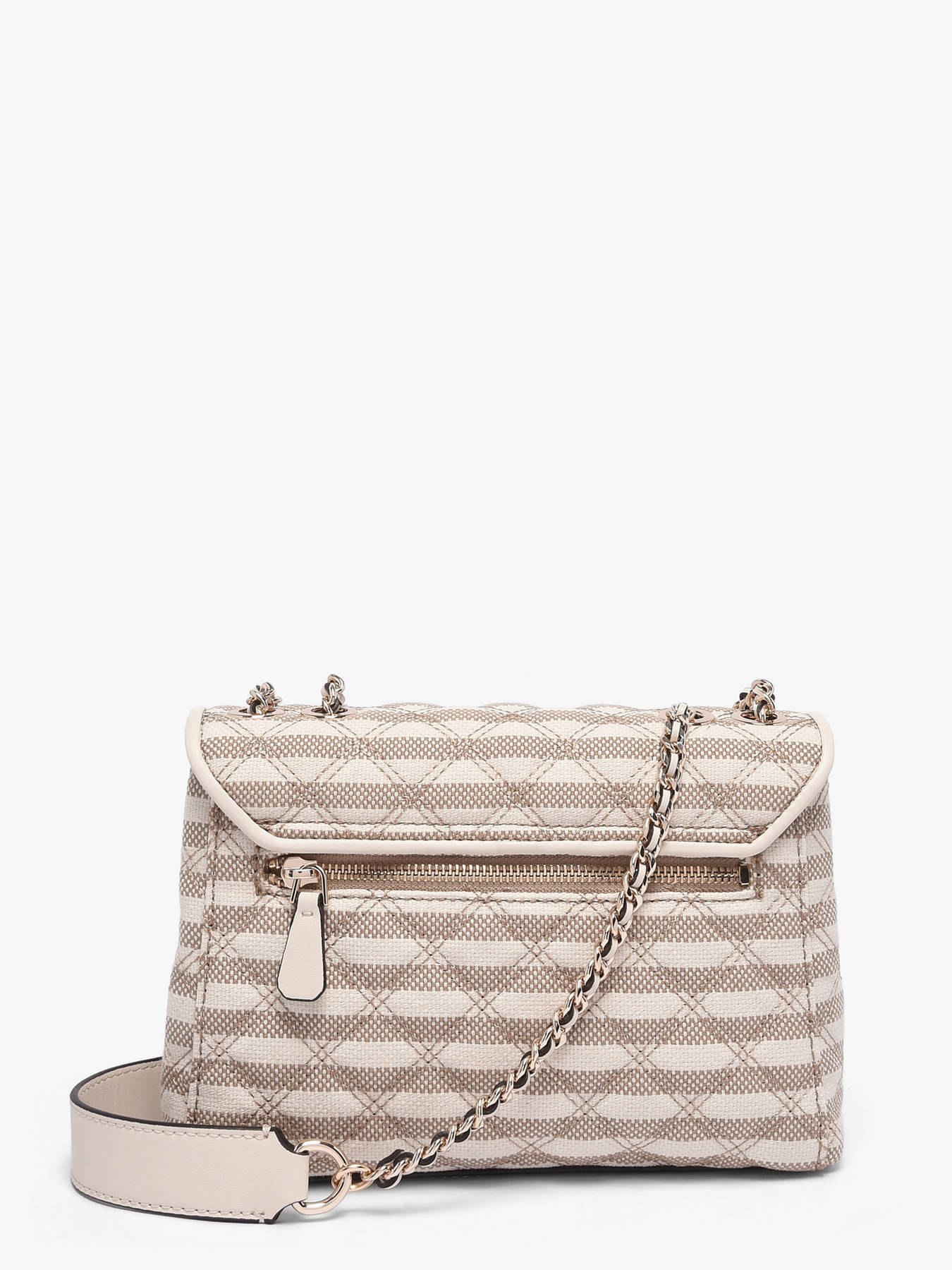 The GIULLY GUESS crossbody bag combines practicality with modern elegance. Made from synthetic-trimmed textile, it provides a lightweight yet durable texture, perfect for everyday use. Its flap with magnetic closure ensures easy access while keeping your belongings secure. The cleverly organized interior features two main compartments, a zip pocket, and six card slots, allowing you to keep essentials neatly arranged. On the outside, a back pocket offers quick access to small items. The 31 cm shoulder strap allows it to be worn on the shoulder or crossbody, blending comfort and style. Its compact yet structured silhouette makes it a versatile companion, ideal for a day in the city or an elegant outing. Every detail reflects the quality and craftsmanship of GUESS, making it both a chic and functional accessory.