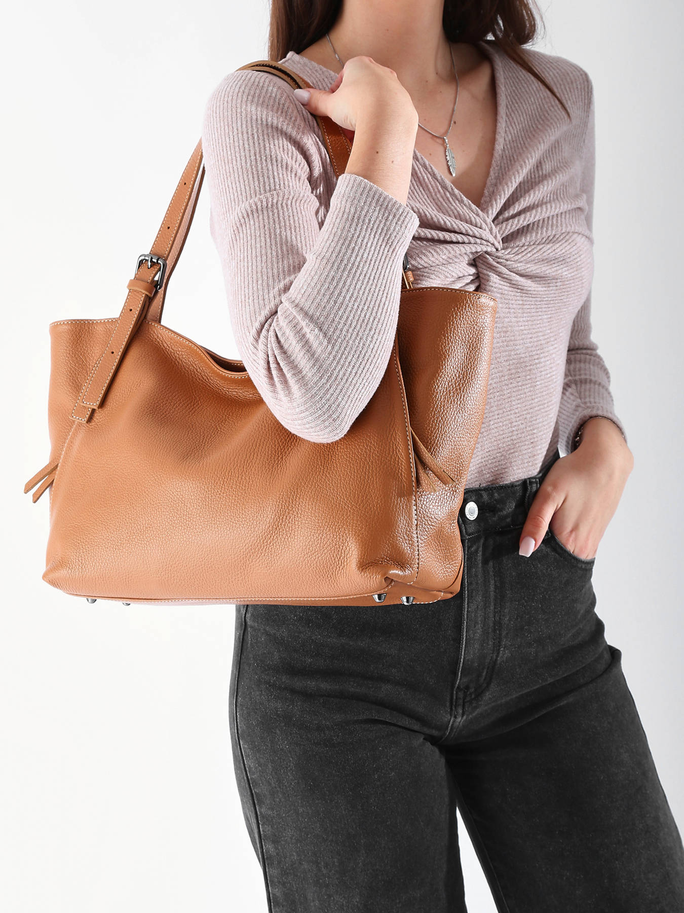 The MILANO A4 shoulder bag, crafted from cowhide leather, combines elegance with functionality. Externally, it features a zip closure to ensure the security of your belongings. It can be worn on the shoulder or by hand, offering flexibility and comfort. Inside, the bag includes two main compartments, a separator for organizing documents, two zip pockets for small accessories, and a simple pocket for better organization. Its sophisticated design and high-quality materials make it a refined choice for everyday use or professional occasions, blending style with practicality.