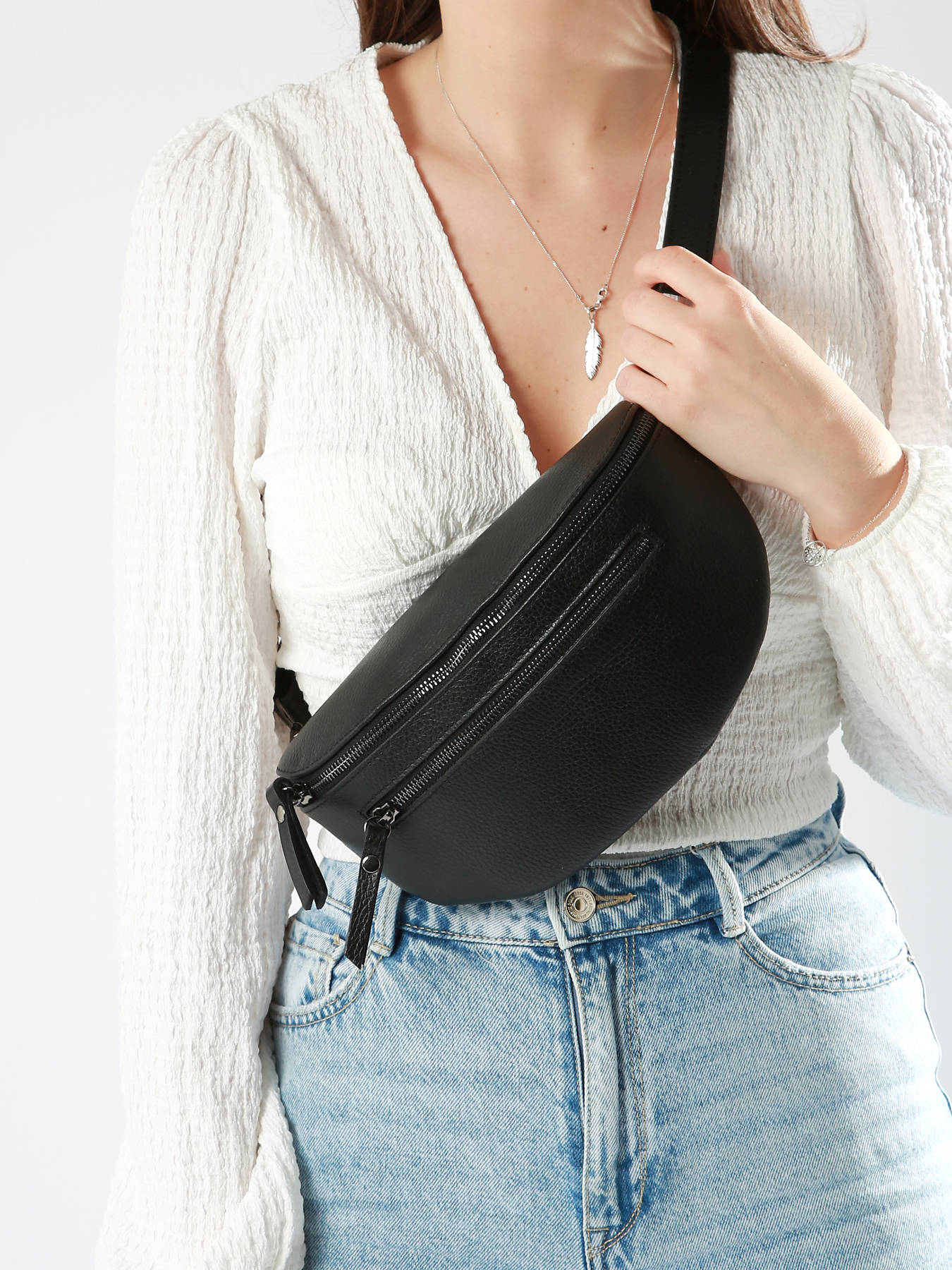The MILANO fanny pack, made from cowhide leather, combines luxury with practicality. Externally, it features a front zip pocket, ideal for quick access to your small essentials. The adjustable, removable strap allows for wear across the chest or around the waist, offering flexibility and comfort as needed. Inside, the bag includes a spacious main compartment and a simple pocket for efficient organization of your belongings. Its elegant design and high-quality materials make it a refined accessory, perfect for combining style with functionality in daily use.