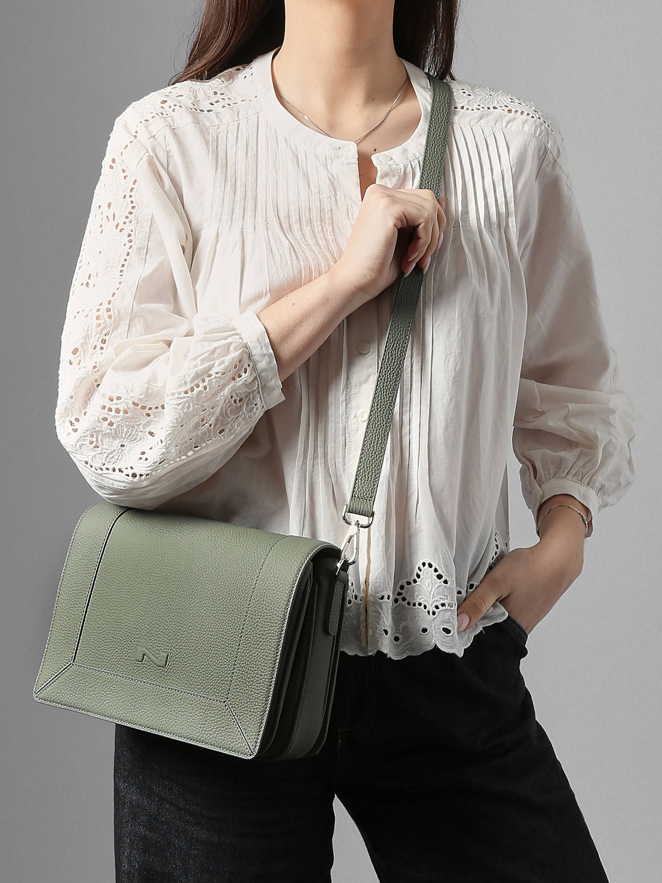 The NATHAN BAUME crossbody bag, crafted from calfskin leather, combines elegance and functionality. Featuring a magnetic flap closure, this bag ensures the safety of your belongings while providing quick and easy access. On the exterior, there is a back pocket for your essentials. The adjustable and removable strap allows for personalized crossbody wear, ensuring optimal comfort. Inside, you'll find a well-organized space with two dividers, one slip pocket, and three separate compartments to keep your belongings neatly arranged. This bag is the perfect accessory to add a sophisticated touch to your daily outfit.