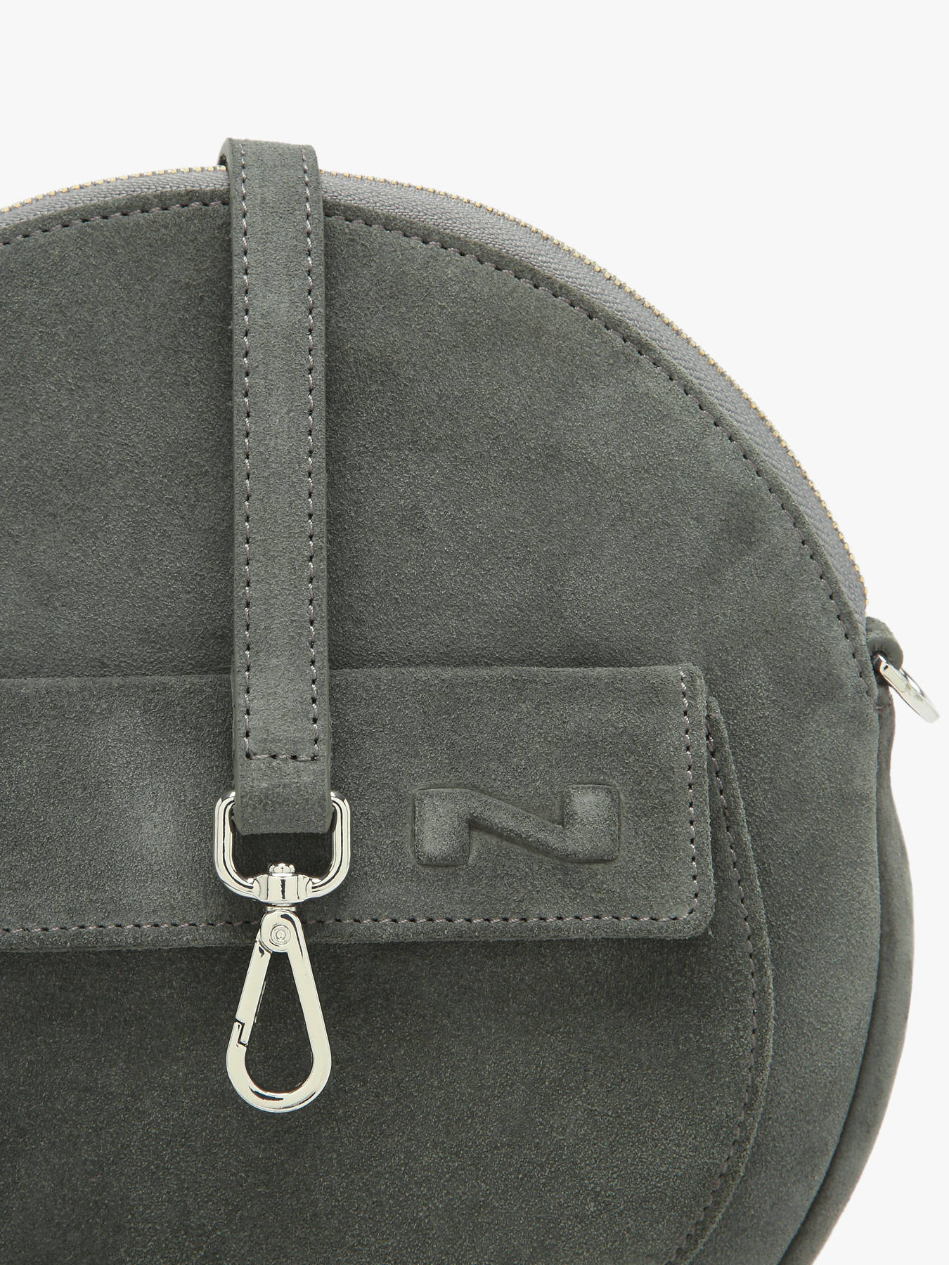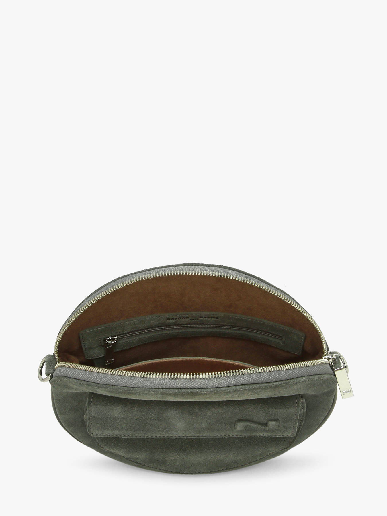 Mesdames, vous allez adorer le look original de ce sac bandoulière de la ligne Dorine de chez Nathan Baume. Ce sac à main femme est une pièce tendance composée d'un superbe cuir de vachette effet daim et doté d'une forme ronde. Le petit format de ce sac à main Nathan Baume vous permet de n'emporter que l'essentiel au quotidien. Sous la fermeture zippée de ce sac bandoulière, vous trouverez une petite poche simple et une poche zippée dans lesquelles vous pourrez ranger de petits objets. Une autre petite poche à rabat se trouve sur l'avant. Grâce à la bandoulière réglable et amovible, vous pourrez choisir de porter ce sac bandoulière Dorine de chez Nathan Baume croisé ou sous le bras. Associez ce sac à main femme à une tenue tendance et vous serez au top.