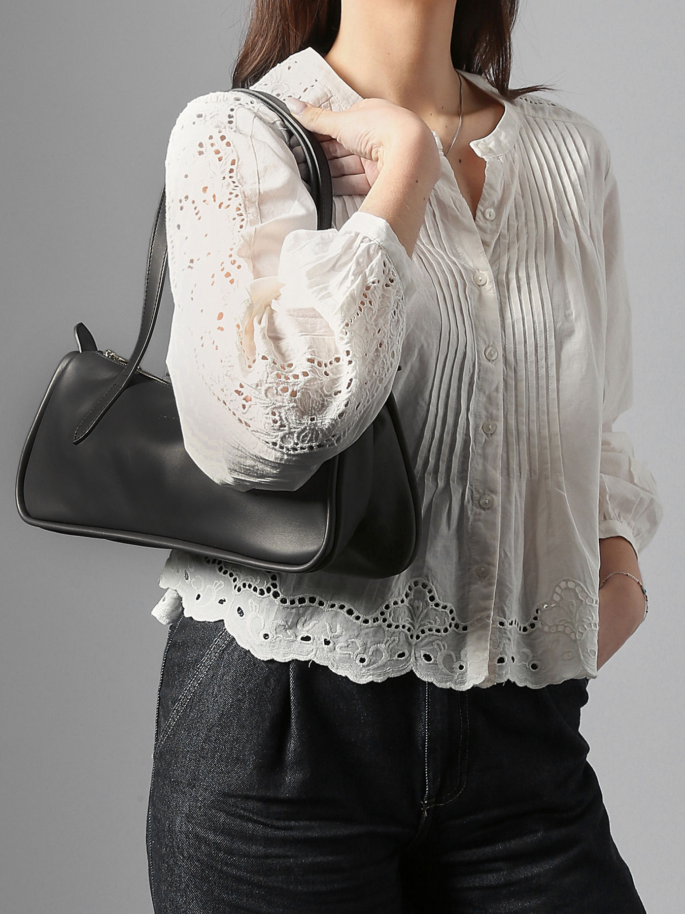 Le sac porté épaule L Looong LONGCHAMP redéfinit l’élégance au quotidien avec sa silhouette élancée et sensuelle, inspirée par la courbe gracieuse d’une selle de cheval. Confectionné en cuir de vachette souple, il se distingue par ses soufflets délicatement pincés, son marquage discret embossé et ses pattes latérales qui accentuent sa forme allongée. La boucle rectangulaire dorée pâle apporte une touche lumineuse et pratique, tandis que l’anse réglable à double boucle permet un porté polyvalent à l’épaule ou à la main. Doté d’une fermeture zippée, d’une poche plaquée et d’une poche zippée à l’intérieur, il allie confort, sophistication et organisation. Sa texture moelleuse, véritable « effet doudou », invite au toucher et confère un style raffiné et contemporain. Polyvalent et ergonomique, le Looong devient un accessoire chic et fonctionnel pour accompagner toutes vos journées, mêlant design, qualité artisanale et sensibilité à l’élégance.