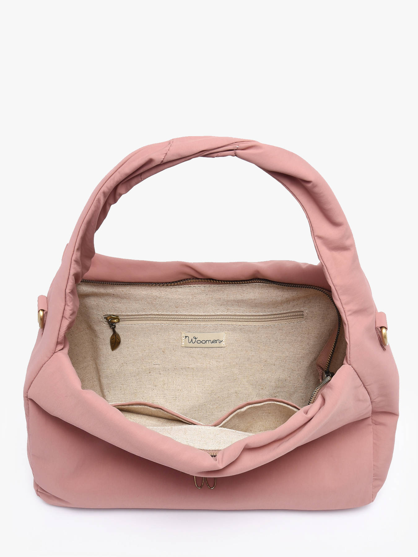 Le sac porté épaule WOOMEN de la ligne PRIMEVERE, au format moyen, séduit par son anse torsadée, ses cordons fantaisies et son logo doré en résine W. Confectionné en nylon recyclé, il dispose d’une fermeture zippée, d’une bandoulière réglable et amovible pour un porté épaule ou bandoulière, d’une poche au dos, ainsi que d’un intérieur doublé en coton et lin comprenant deux poches simples, une poche zippée et un compartiment unique.