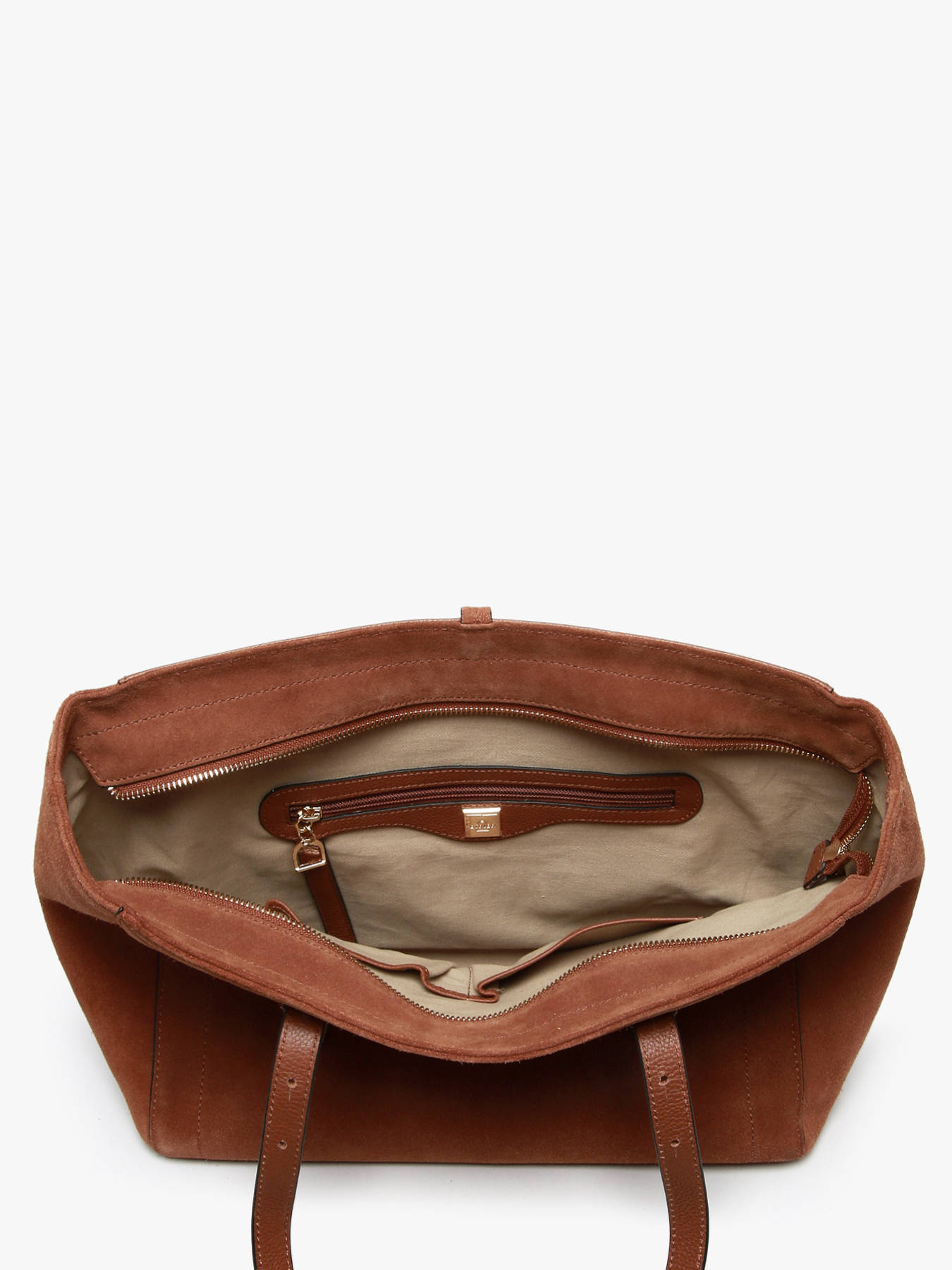 The ETRIER shoulder bag from the ALTESSE SUEDE line is crafted from soft velvety leather. It features a tote shape ideal for everyday use. It closes with a zipper and is adorned with a stirrup-shaped pendant, the elegant signature of the House. Inside, a spacious compartment includes two slip pockets and a zipped pocket for optimal organization. It also offers a generous size that can accommodate A4 documents as well as a laptop up to 13 inches. The back of the bag is made of grained leather for enhanced durability. The ALTESSE SUEDE line revisits the ETRIER icon with a warm texture and a ""Highlander Cowboy"" spirit, blending refinement and character.