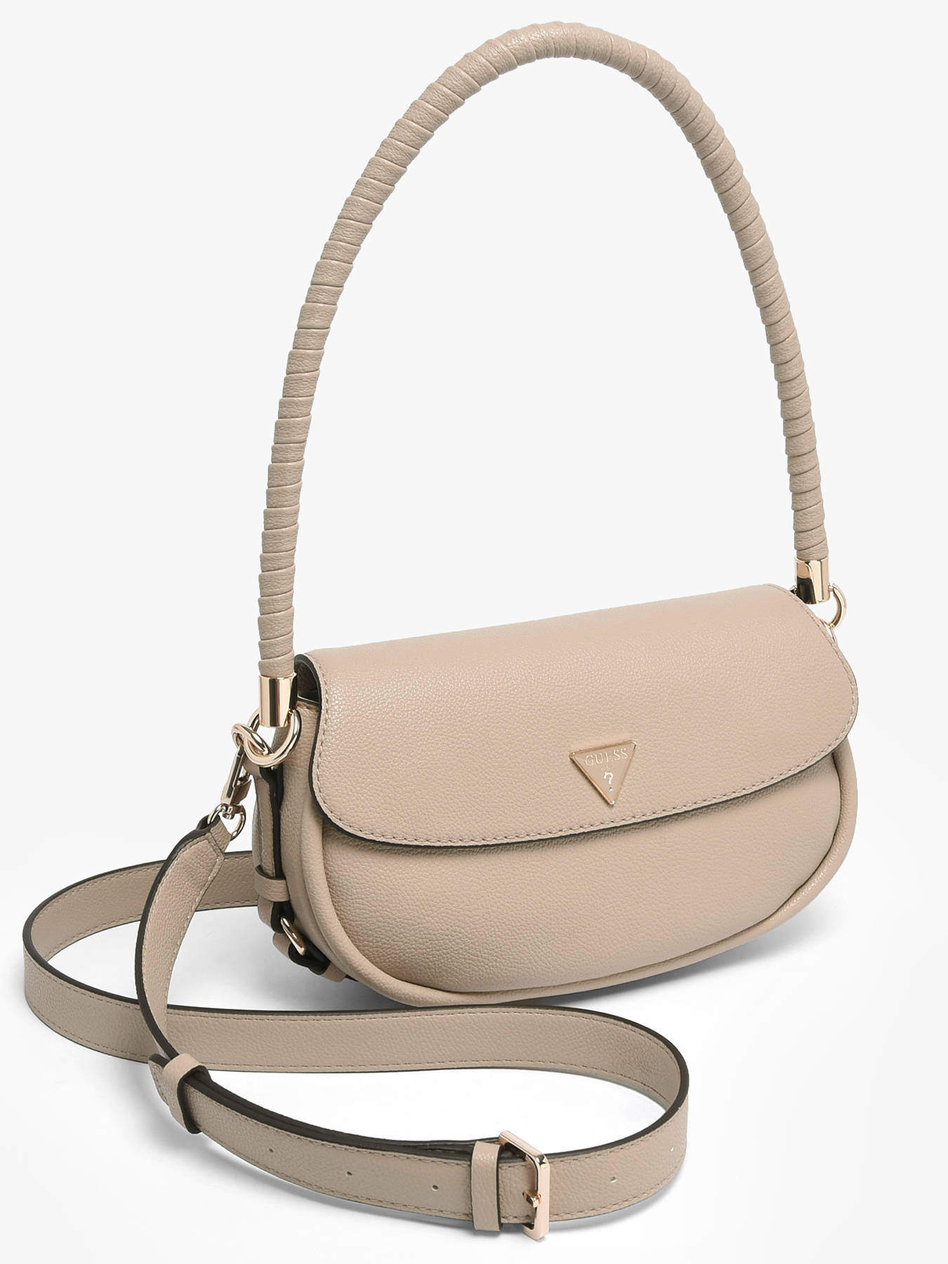 The DANYA GUESS crossbody bag in PU combines elegance, versatility, and practicality. Its flap with snap closure adds a modern touch while keeping your belongings secure. Inside, one main compartment, a zip pocket, and three card slots allow you to organize your essentials efficiently. The adjustable and detachable strap offers multiple carrying options: on the shoulder, crossbody, or by hand, adapting to any occasion or preference. With a 21 cm handle height, it can be carried comfortably while maintaining a chic, structured look. Compact and refined, this bag perfectly complements urban or more sophisticated outfits, adding a modern stylish touch to your wardrobe. Every detail reflects GUESS’s craftsmanship, making this bag a practical, elegant, and trendy accessory for everyday use.