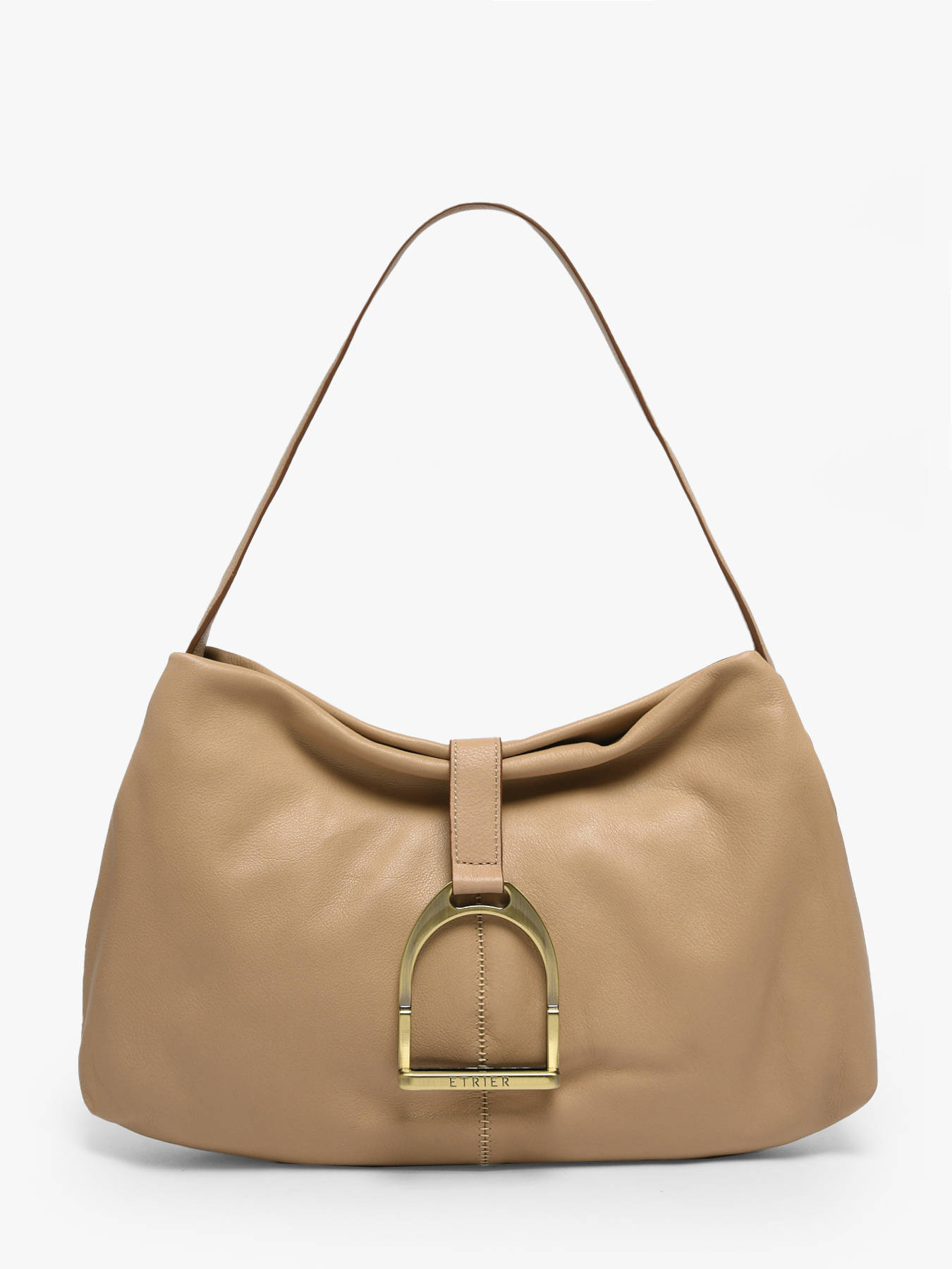 Elegant and compact, the ETALON S bag by ETRIER embodies a chic and feminine everyday style. Crafted from full-grain cowhide leather, it stands out for its supple feel and impeccable structure. Its magnetic closure is enhanced by the iconic suspended stirrup jewel, an elegant signature of the ETRIER house. The cleverly designed interior features three compartments, including one zipped compartment, allowing you to organize your essentials with ease. Designed for comfortable shoulder wear, it features a 25 cm handle, ideal for accompanying your active days. A timeless leather bag, perfect for adding a fashionable touch to all your looks.