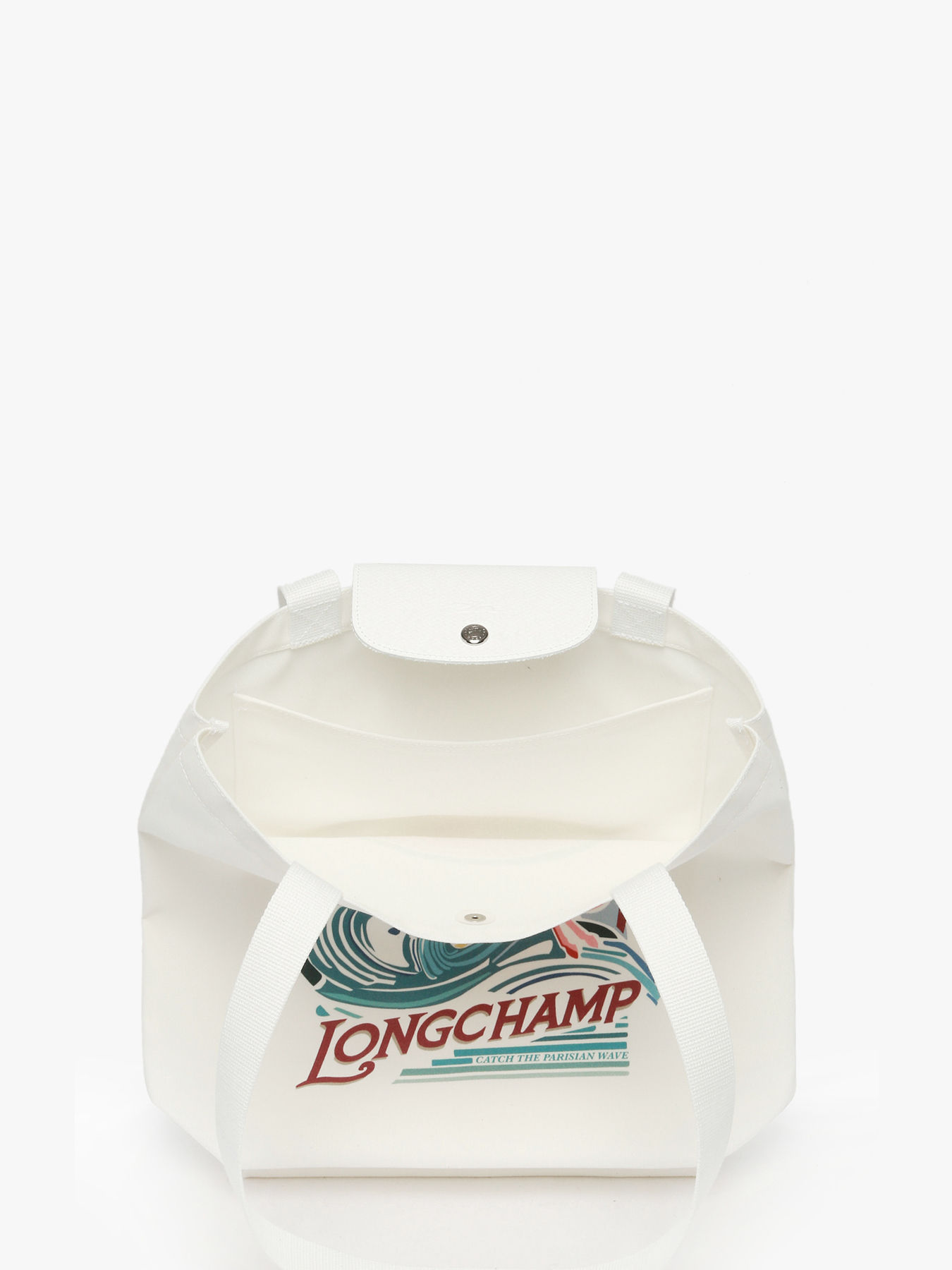 The Le Pliage M Tote Bag LONGCHAMP embodies the ultimate summer spirit. Crafted from thick, durable cotton canvas and enhanced with tonal white trims, it exudes a fresh, refined look. Its sunny print features Longchamp’s iconic horse riding a wave, a nod to beach days and golden summer evenings. Equipped with a snap closure, a single interior compartment, and a simple pocket, it offers ample space for A4 documents, a laptop, and everyday essentials. Leather accents and silver metal finishes add elegance and sophistication, while the 30 cm handle height ensures comfortable shoulder carrying. Versatile and chic, this Le Pliage tote perfectly combines style, functionality, and summery energy, staying true to the line’s spirit that reinvents itself each season for a creative and dynamic everyday life.