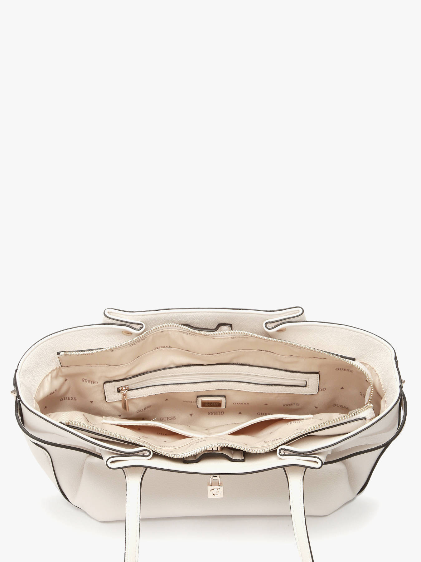 The NOELLE GUESS handbag in P.U. combines modern design and functionality. Its sleek exterior features a secure zip closure, while the 32 cm handle offers comfortable shoulder carrying, perfect for everyday use. Inside, it includes a spacious main compartment complemented by four simple pockets and one zipped pocket, ideal for neatly organizing your essentials. This versatile bag easily matches any outfit, adding a chic and practical touch to your style.