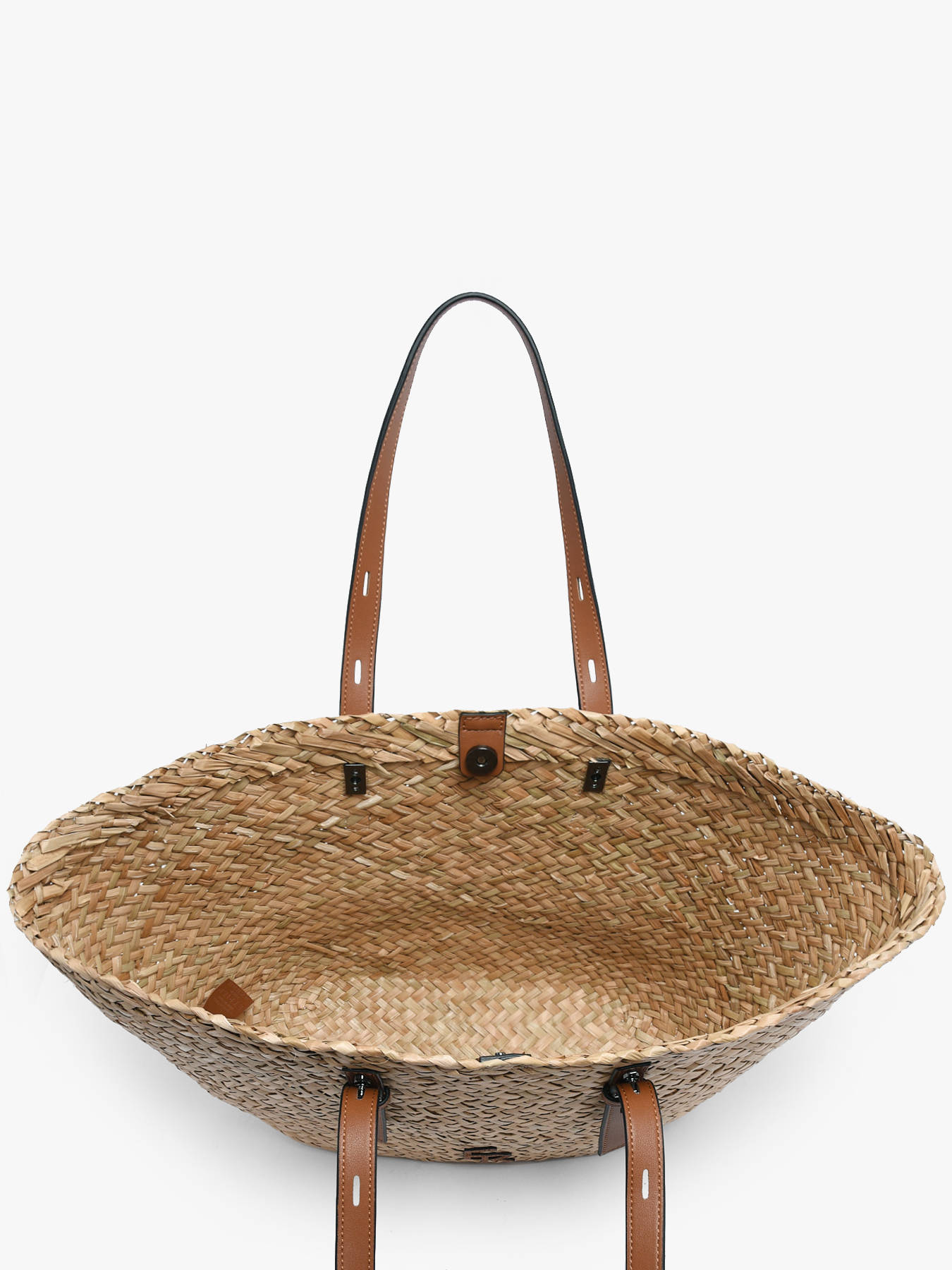 The ETRIER shoulder bag from the SHETLAND line reinvents the summer tote with elegance and modernity. Crafted from reed with leather detailing, it perfectly combines natural style and everyday practicality. Its spacious compartment closes with a magnetic snap, providing easy and secure access to your essentials. The shoulder strap is adjustable thanks to a slider system enhanced with ETRIER-engraved hardware, while the 22 cm handle ensures optimal comfort. The leather logo patch on the front of the tote adds a distinctive, authentic touch, making this bag a stylish companion for your summer looks.