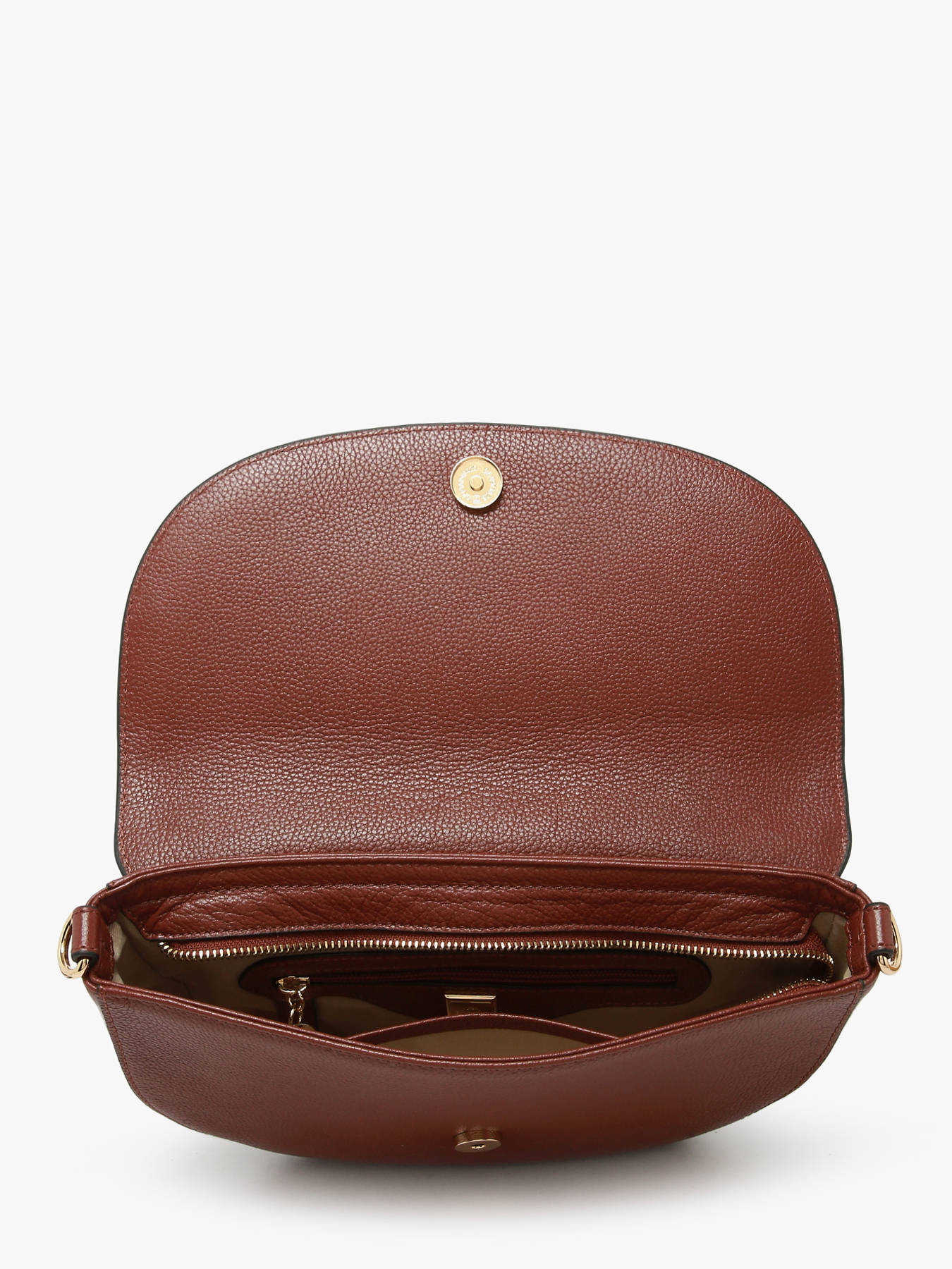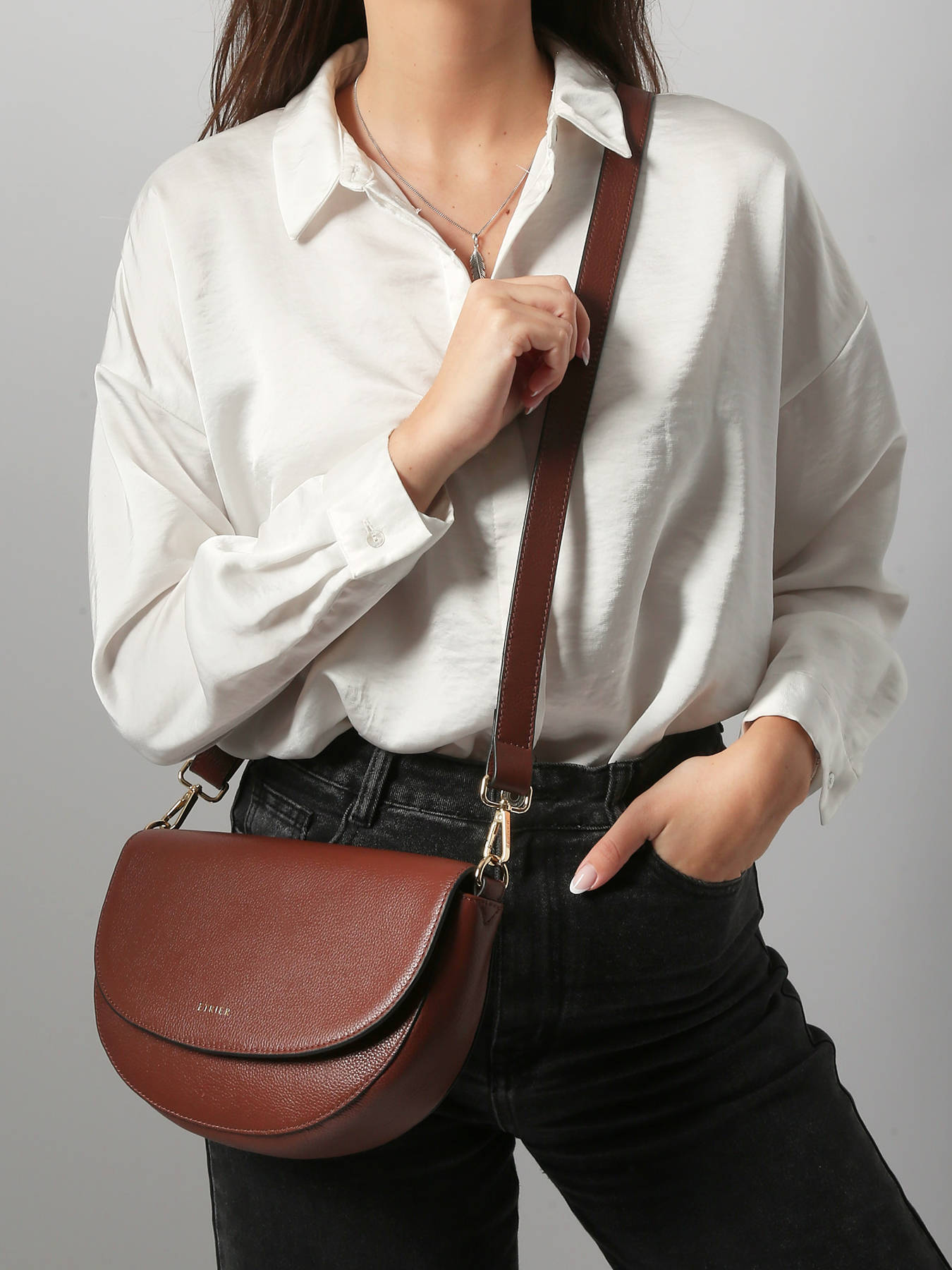 Discover the new shoulder bag in the TRADITION line by ETRIER, a key piece that combines elegance and functionality. This revisited model will win you over with its trendy, timeless design, ideal for complementing all your outfits, whether for everyday use or for special occasions. Carefully crafted from full-grain cowhide leather, it guarantees exceptional quality and durability. When it comes to practicality, this shoulder bag closes easily thanks to its secure magnetic snap flap, while offering quick access to your essentials. On the outside, there's a discreet zipped pocket on the back to keep your belongings safe and secure. Inside, you'll find a single pocket and a zipped pocket that make it easy to organise your essentials, such as keys, wallet or smartphone. The gold accessories add a touch of refinement, while its compact, modern format is perfectly suited to the needs of active, stylish women.