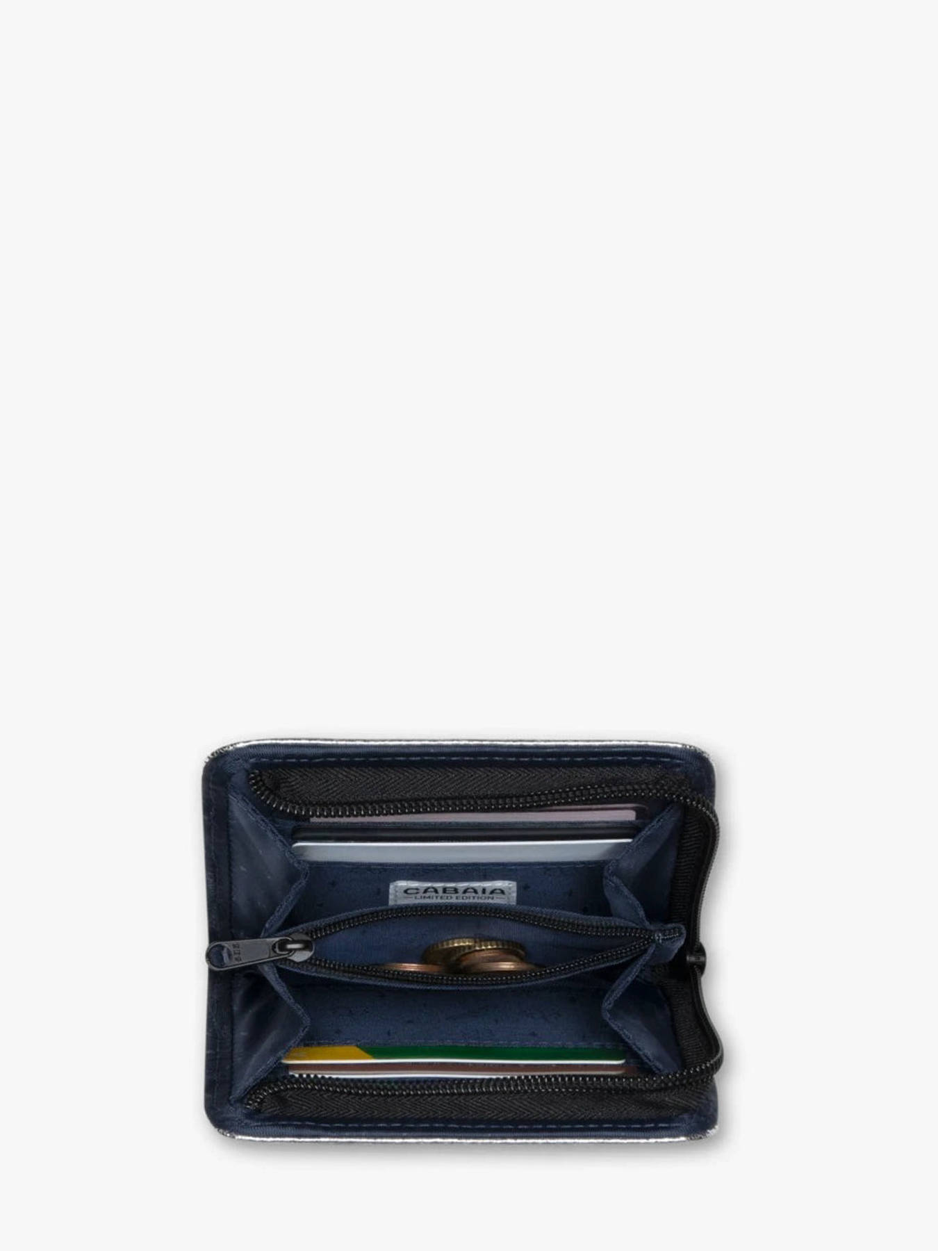 The LUCKY STAR wallet by CABAIA, made from recycled polyester, is the perfect accessory to combine practicality with environmental responsibility. Its zip closure ensures optimal security for your personal belongings. Inside, it features two simple pockets for flexible storage, along with six dedicated card slots, allowing you to organize your cards efficiently. An additional zippered pocket provides a secure space for coins or small valuables. Compact and lightweight, this wallet is designed for everyday use, blending contemporary design with sustainable commitment. Ideal for those who want to embrace a responsible style without compromising on functionality.